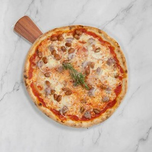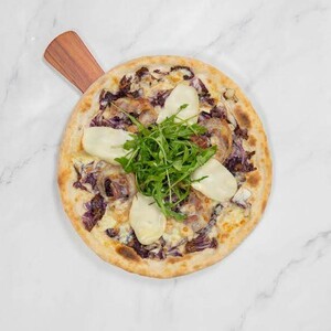 Base bianca, radicchio, pancetta, scamorza e rucola
