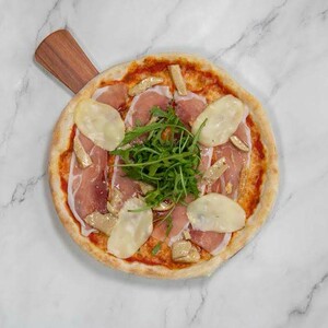 Prosciutto crudo, rucola, stracchino e pomodorini